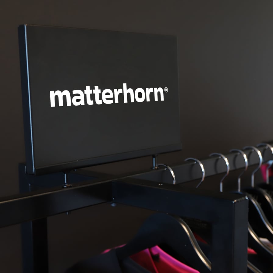 Garment Display Logo Sign fra Matterhorn er et ONE SIZE-brandskilt, der bestilles sammen med Garments Display 1000528.