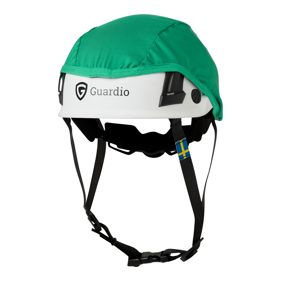 Guardio Ambulance Helmet Cover er et hjelmovertræk til Guardio Armet-beskyttelseshjelmen, der er designet til paramedicinere. Et hjelmovertræk, der fungerer med visir og høreværn, og som er lavet af fleksibelt bambusmateriale. Fås i helt grøn og grøn med reflekser i skakmønster.