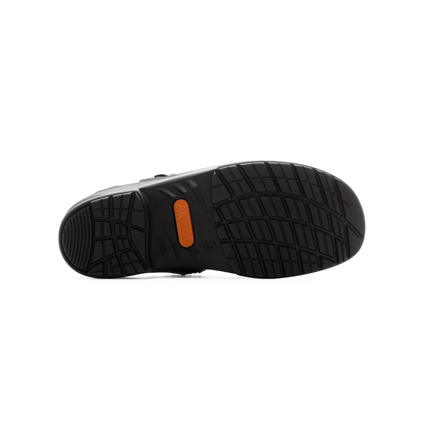 Birka Backstrap er en klassisk Flex-tøffel med PU-ydersål og en ergonomisk Texon-indlægssål med pude og tågreb. Tæt på foden ligger en blød latexpude dækket af fugtabsorberende spaltlæder. Ydersålen er stødabsorberende og skridsikker, certificeret i henhold til SRC.