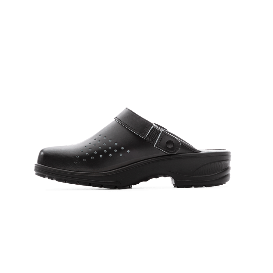Birka Backstrap er en klassisk Flex-tøffel med PU-ydersål og en ergonomisk Texon-indlægssål med pude og tågreb. Tæt på foden ligger en blød latexpude dækket af fugtabsorberende spaltlæder. Ydersålen er stødabsorberende og skridsikker, certificeret i henhold til SRC.