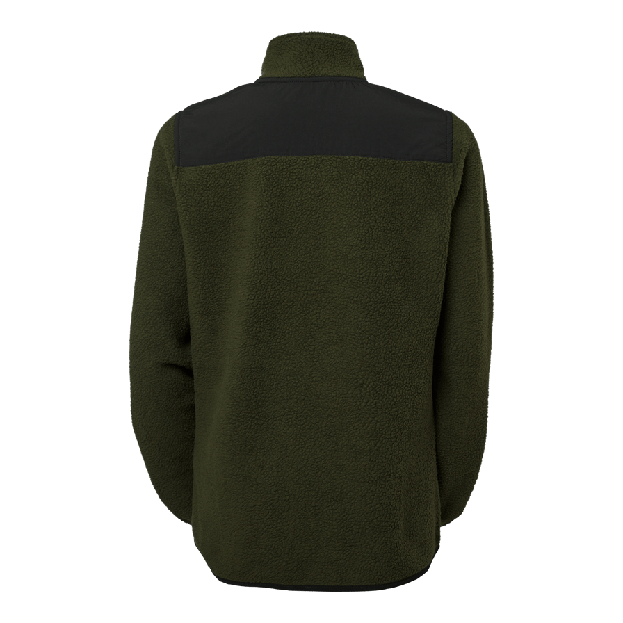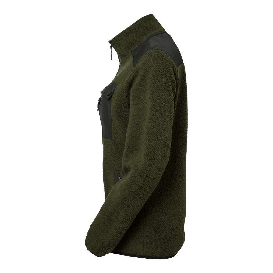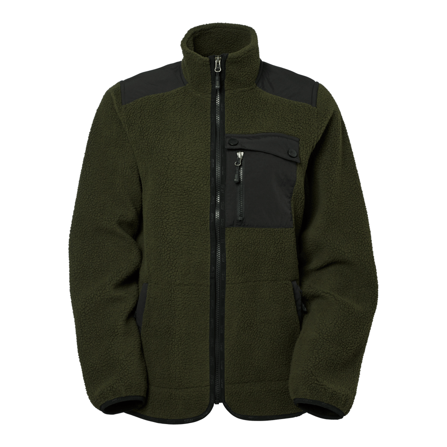 Slim fit Sherpa-fleece med blød inderside og fluffy yderside. Forstærkede sektioner på skuldre og bærestykke. To sidelommer, paspolerede lommer og en brystlomme med dobbeltfunktion. Afrundet kant bagpå og diskret SW-bånd for enden af tøjet.