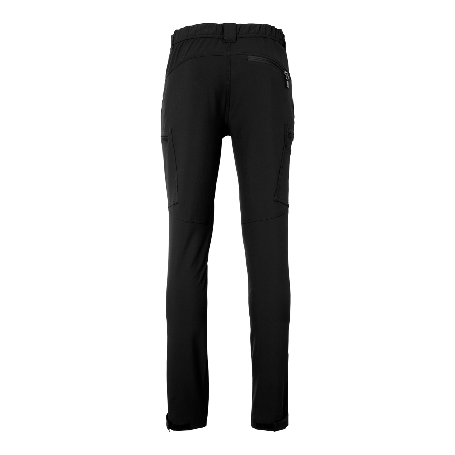Moderne servicebukser i genbrugspolyester og elastan for optimal stretch og komfort. Udstyret med flere praktiske lommer, bl.a. kuglepen- og mobillomme. Benlommer og baglomme med lynlås og refleksdetaljer. Justerbar velcrolukning forneden i buksebenene