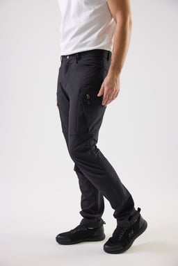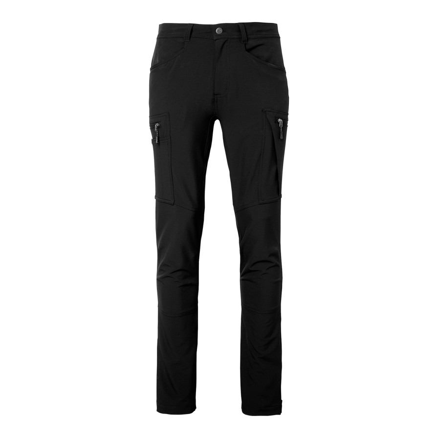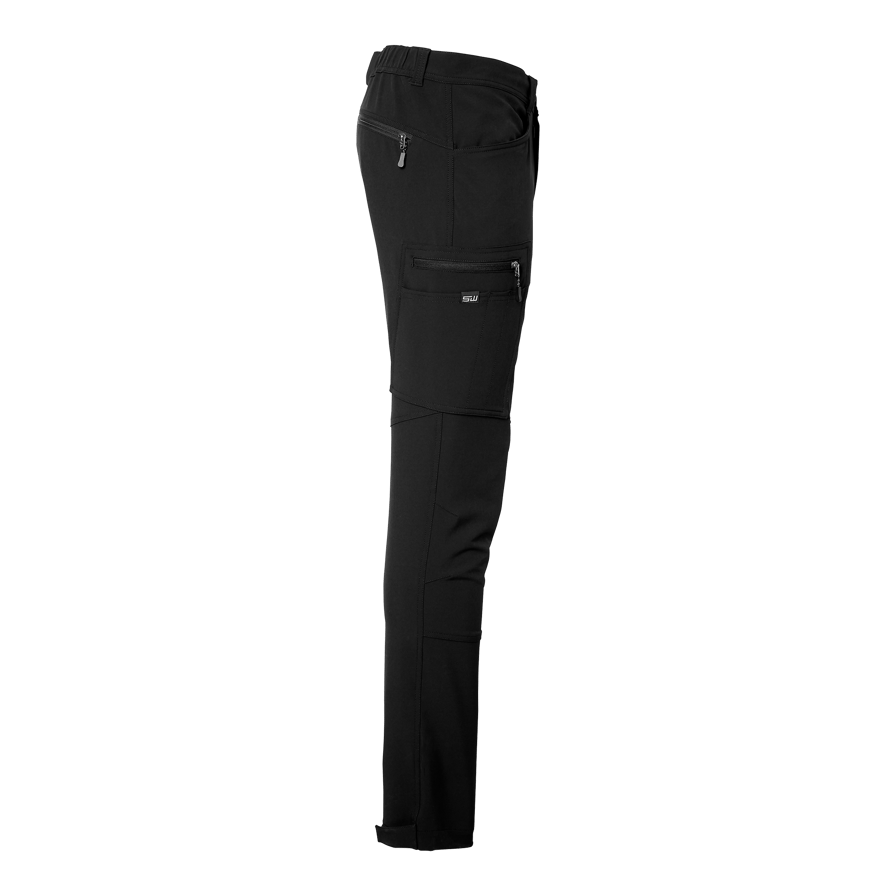 Moderne servicebukser i genbrugspolyester og elastan for optimal stretch og komfort. Udstyret med flere praktiske lommer, bl.a. kuglepen- og mobillomme. Benlommer og baglomme med lynlås og refleksdetaljer. Justerbar velcrolukning forneden i buksebenene
