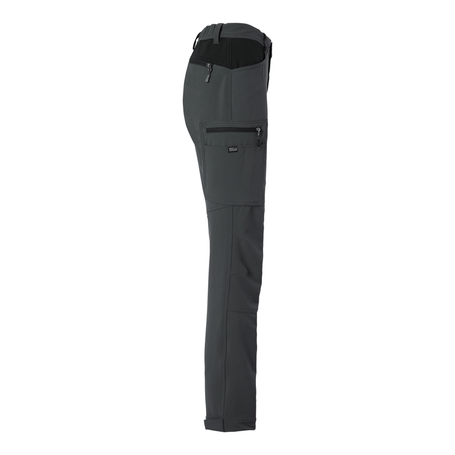 Moa Trousers w fra South West er slidstærke og funktionelle servicebukser, der er designet specielt til kvinder, som ønsker både komfort og stil i deres arbejdstøj. Bukserne er fremstillet af genbrugspolyester og elastan og har en behagelig og elastisk pasform, der tilpasser sig dine bevægelser i løbet af arbejdsdagen. Bukserne er udstyret med flere praktiske lommer, bl.a. en kuglepenslomme og en mobillomme, som gør dem både funktionelle og brugervenlige. Benlommerne og baglommen har lynlåse med refleksdetaljer for at øge synligheden og sikkerheden. Desuden kan benvidden justeres med velcro i bunden for at få en perfekt tilpasset pasform. Moa Trousers w er det perfekte valg til kvinder, der ønsker en moderne, komfortabel og miljøvenlig løsning til både arbejde og fritid.