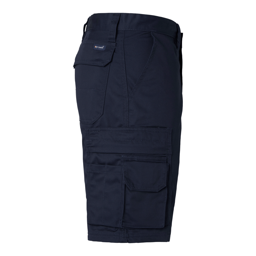 Shorts med to indsyede forlommer og to baglommer med klap og trykknapper. To benlommer med lynlås, den ene med telefonlomme og kuglepenslomme. Ideelle til arbejde i varme omgivelser.
