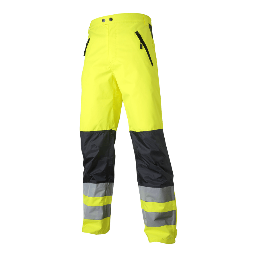 Vind- og vandtætte skalbukser med tapede sømme og god åndbarhed. To forlommer med lynlås, lynlås fra knæ til benafslutning og justerbar benafslutning med velcro. Perfekt til arbejde i barske miljøer.