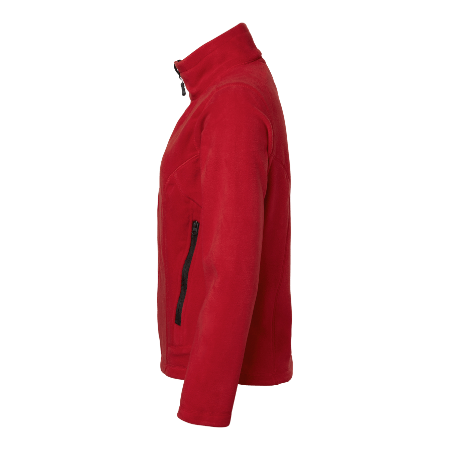 Fleecejakke med gennemgående lynlås i krav og kædebeskyttelse fra Top Swede. To forlommer med lynlås, justerbar løbegang i bunden. Lidt indadvendt model. Perfekt til arbejde inden for byggeri og industri.