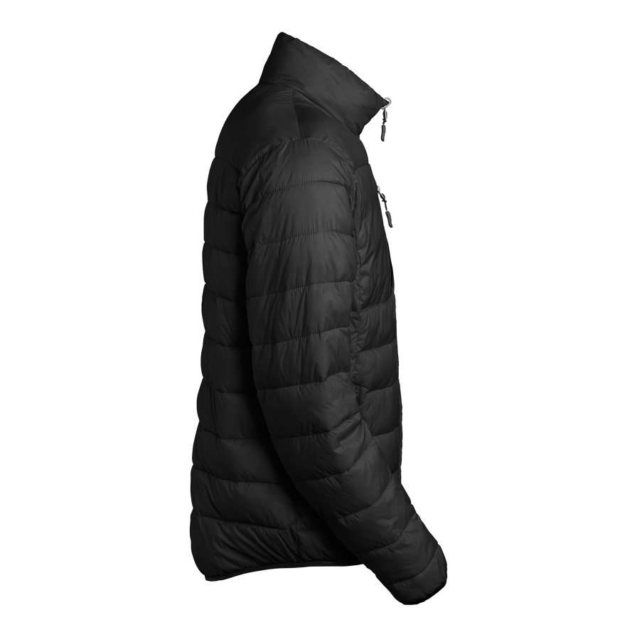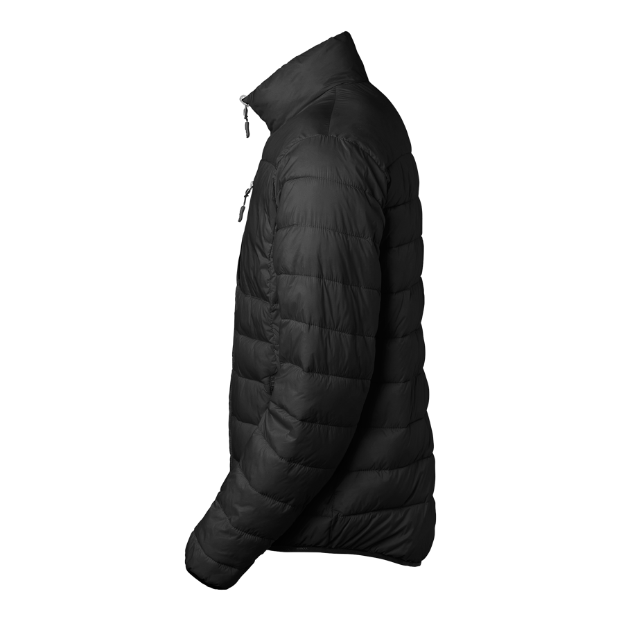 Moderne letvægtsjakke med imiterede dun og en tæt pasform. Kan bruges alene eller sammen med Ames-skaljakken som varmende foring. Smalle kanaler holder dunene på plads. En brystlomme og to sidelommer. Elastik forneden og ved håndleddene.