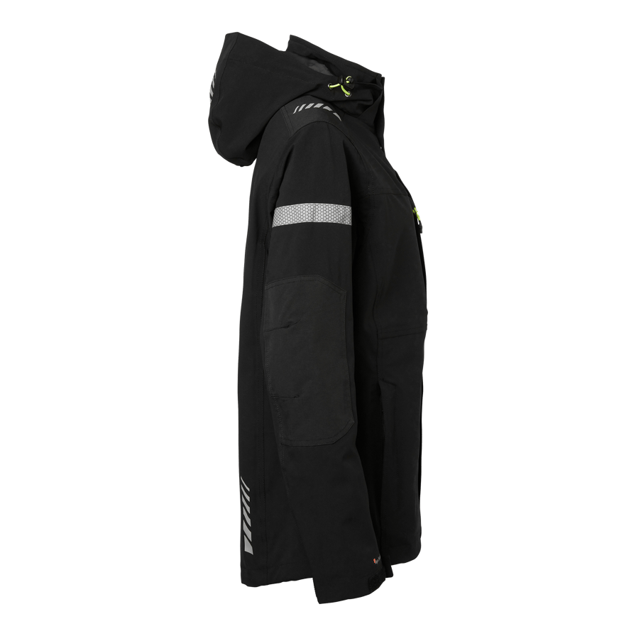 Vind- og vandtæt skaljakke til kvinder med tapede sømme og god åndbarhed. Udstyret med en brystlomme, inderlomme/telefonlomme, to forlommer og en stor napoleonslomme. Aftagelig hætte og refleksdetaljer for øget synlighed. Justerbare manchetter og forneden.