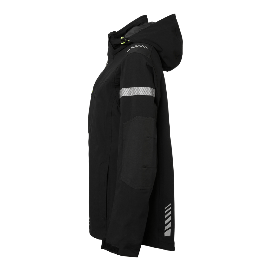 Vind- og vandtæt skaljakke til kvinder med tapede sømme og god åndbarhed. Udstyret med en brystlomme, inderlomme/telefonlomme, to forlommer og en stor napoleonslomme. Aftagelig hætte og refleksdetaljer for øget synlighed. Justerbare manchetter og forneden.
