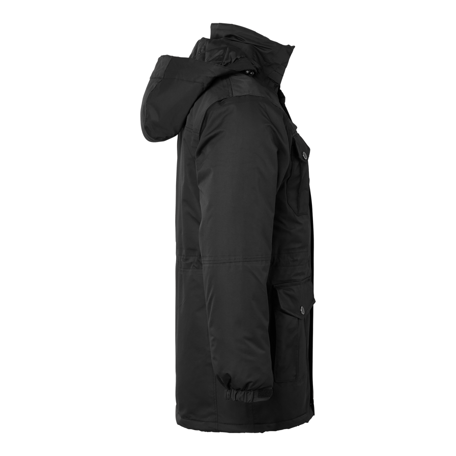 Top Swede 6020 Parka w er den perfekte løsning til kolde og våde dage. Denne vind- og vandtætte parka med tapede sømme sikrer, at du holder dig tør og varm, uanset vejrforholdene. Med quiltfor og en aftagelig, foret hætte giver den ultimativ varmeisolering og fleksibilitet. Parkaen har en høj krave, to forlommer med klap og lynlås, to brystlommer, en ærmelomme med lynlås og flere inderlommer, bl.a. en telefonlomme og en kortlomme, til optimal opbevaring. Med justerbare manchetter, snore i taljen og forneden samt tommelfingergreb kan du tilpasse pasformen for at opnå maksimal beskyttelse og komfort. Denne parka kombinerer funktion og stil, hvilket gør den ideel til både arbejde og fritid.