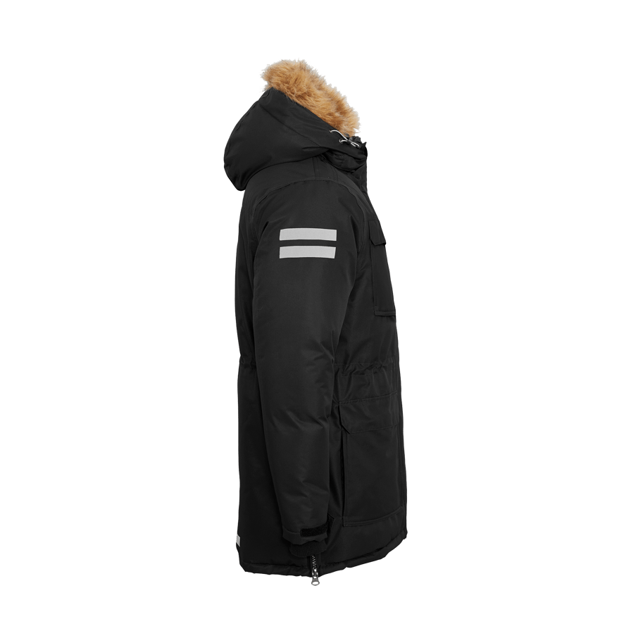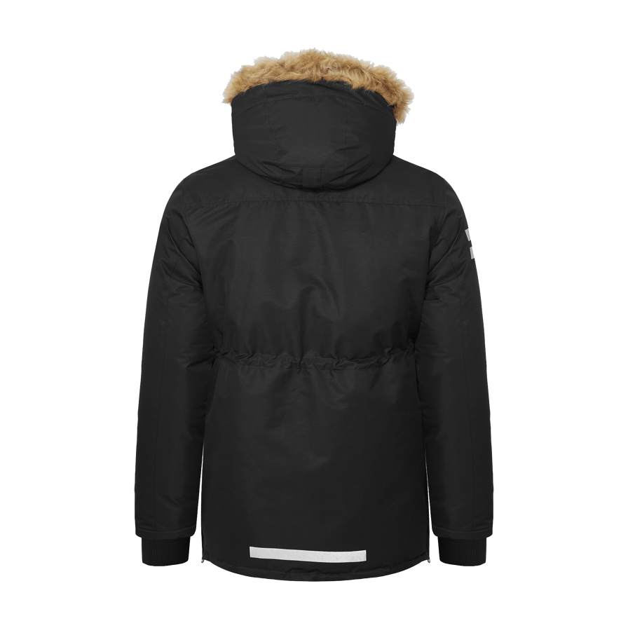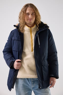 Hillary Parka fra Matterhorn er en slidstærk og funktionel vinterparka, fremstillet af genbrugspolyester, som giver både varme og beskyttelse under kolde og våde forhold. Parkaen er både vind- og vandtæt med tapede sømme, og yderstoffet er behandlet med PFC-fri Bionic Eco, som giver effektiv og miljøvenlig beskyttelse mod elementerne. Med flere praktiske lommer, justerbare manchetter, snøre i taljen og ventilationsåbninger i siden med lynlås kan du nemt justere pasformen for optimal komfort. Den aftagelige og justerbare hætte giver ekstra fleksibilitet. Hillary Parka er et pålideligt valg til både arbejde og fritid i vintermånederne.