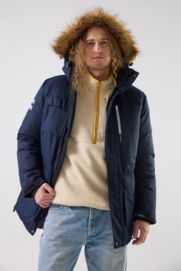 Hillary Parka fra Matterhorn er en slidstærk og funktionel vinterparka, fremstillet af genbrugspolyester, som giver både varme og beskyttelse under kolde og våde forhold. Parkaen er både vind- og vandtæt med tapede sømme, og yderstoffet er behandlet med PFC-fri Bionic Eco, som giver effektiv og miljøvenlig beskyttelse mod elementerne. Med flere praktiske lommer, justerbare manchetter, snøre i taljen og ventilationsåbninger i siden med lynlås kan du nemt justere pasformen for optimal komfort. Den aftagelige og justerbare hætte giver ekstra fleksibilitet. Hillary Parka er et pålideligt valg til både arbejde og fritid i vintermånederne.