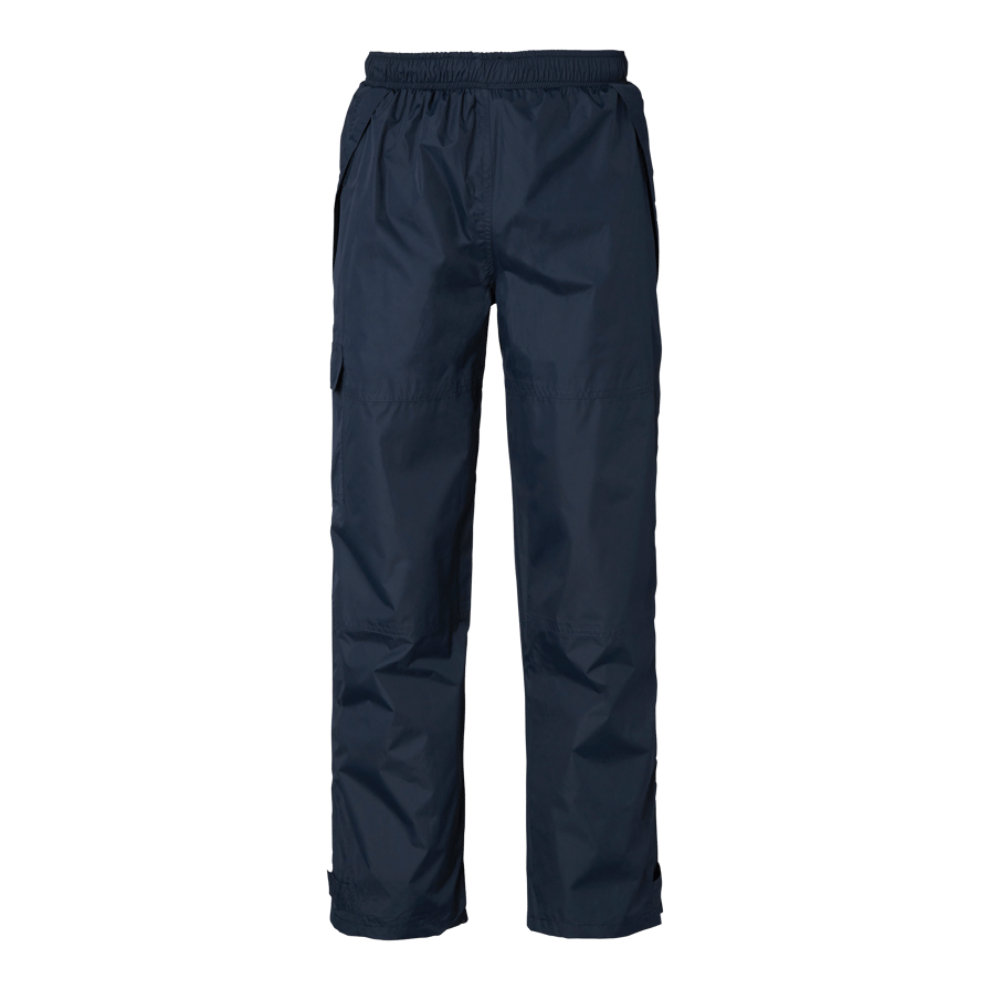 Komplet regntøj med tapede sømme. Jakke med skjult hætte, justerbare manchetter og forneden. To forlommer og en inderlomme med lynlås. Bukser med lommer og velcrolukning samt justerbare forneden