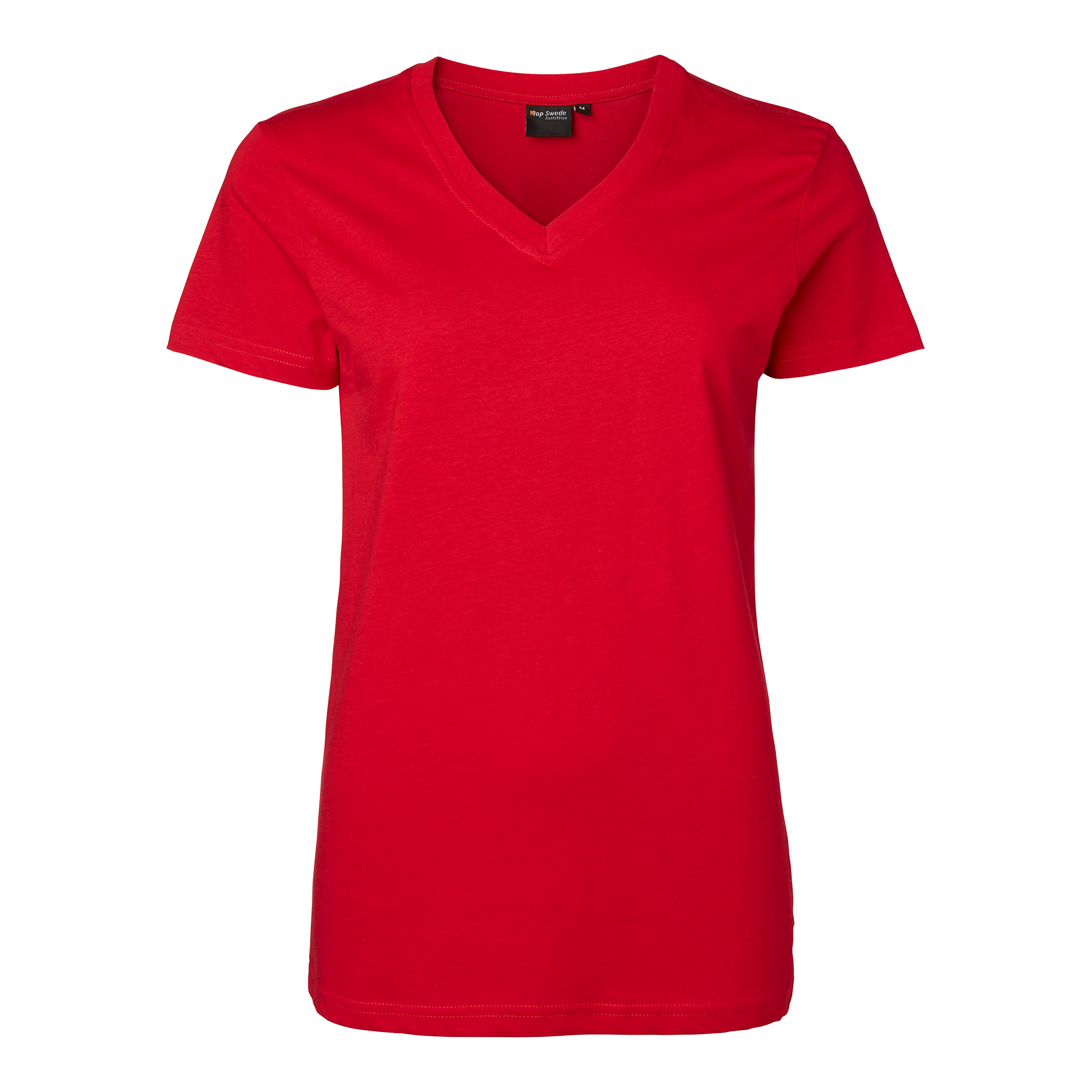 Kortærmet T-shirt med V-hals til kvinder fra Top Swede. Fremstillet af 100 % bomuld for komfort og holdbarhed. Ideel til arbejde inden for byggeri og industri.