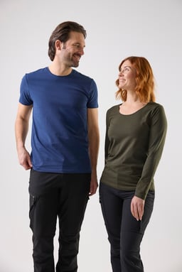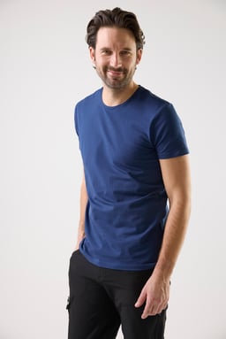 T-shirt i Fairtrade-certificeret bomuld med stretch og rund hals med smal ribkant. Behagelig pasform, der kombinerer stil og holdbarhed til både arbejde og fritid.