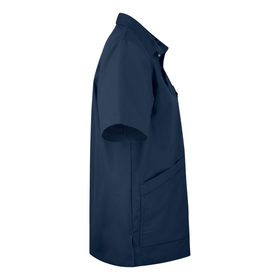 Alex Shirt fra South West er en alsidig og rummelig unisex-skjorte, som er perfekt til sundhedspersonale. Den er designet med en klassisk krave og trykknapper langs stolpelukningen, så den er nem og bekvem at åbne. Skjorten har to skrå forlommer, hvoraf den ene er udstyret med en nøgle-/kortholder, samt en brystlomme med ringknap til sikker opbevaring af vigtige genstande. Slidser i sidesømmene forbedrer bevægeligheden, hvilket gør skjorten ideel til professionelle, der har brug for fleksibilitet og komfort i løbet af deres arbejdsdag. Med en ryglængde på 74 cm i størrelse M er Alex Shirt både funktionel og stilfuld, og South Wests høje kvalitetsstandarder sikrer, at den kan holde til daglig brug i krævende arbejdsmiljøer. Denne skjorte kombinerer praktiske funktioner med et professionelt design, hvilket gør den til et godt valg for alle, der er på udkig efter pålideligt og komfortabelt arbejdstøj. Slids i siden.