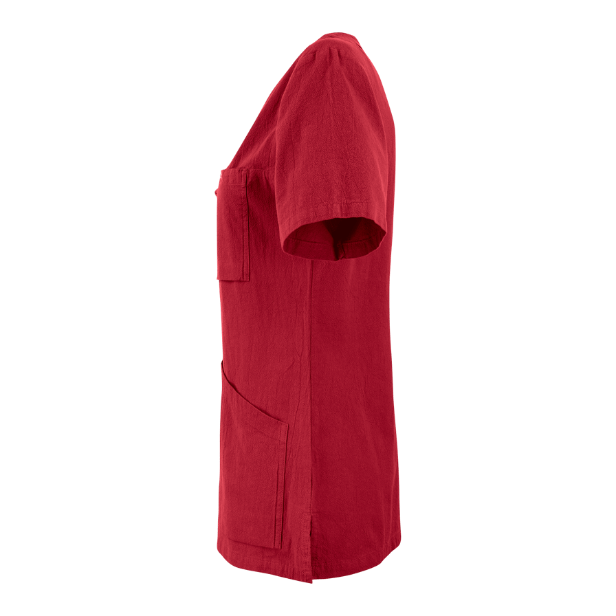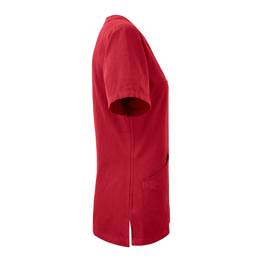 Bluse med V-hals, slank pasform og figursyet talje. Udstyret med rummelige forlommer inklusive nøgleholder og mobillomme og brystlomme med trykknap og kortholder. Slids i siden. Krøllet bomuld.