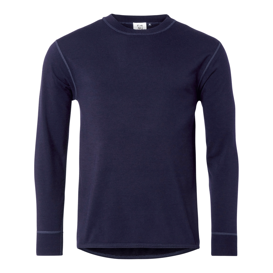 Undertrøje med rund hals i Grounded uldfrotté fremstillet af den fineste merinould blandet med syntetiske fibre for at øge materialets styrke. Designet til både arbejde og fritid. Tøjet opfylder alle krav til beskyttelse, komfort og styrke i en moderne funktionel beklædningsgenstand. Der er lagt stor vægt på pasform og komfort. Basislaget er designet til at blive båret tæt på kroppen, isolere og skabe en balance mellem varme og kulde. Fugt transporteres væk, mens varmen bevares. Selv når det er fugtigt, holder materialet på varmen og forhindrer nedkøling.