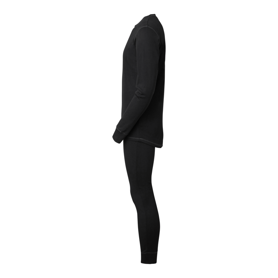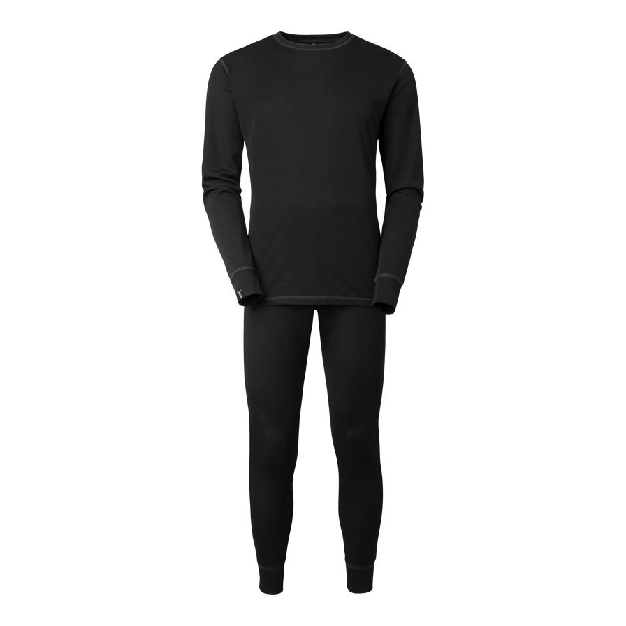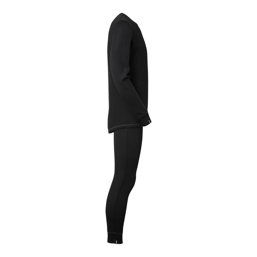 Ensfarvet, funktionelt basislag af polyester med flatlock-sømme i kontrastfarve. Brugt som første lag transporterer den effektivt fugt væk fra kroppen og holder dig tør og veltilpas.
