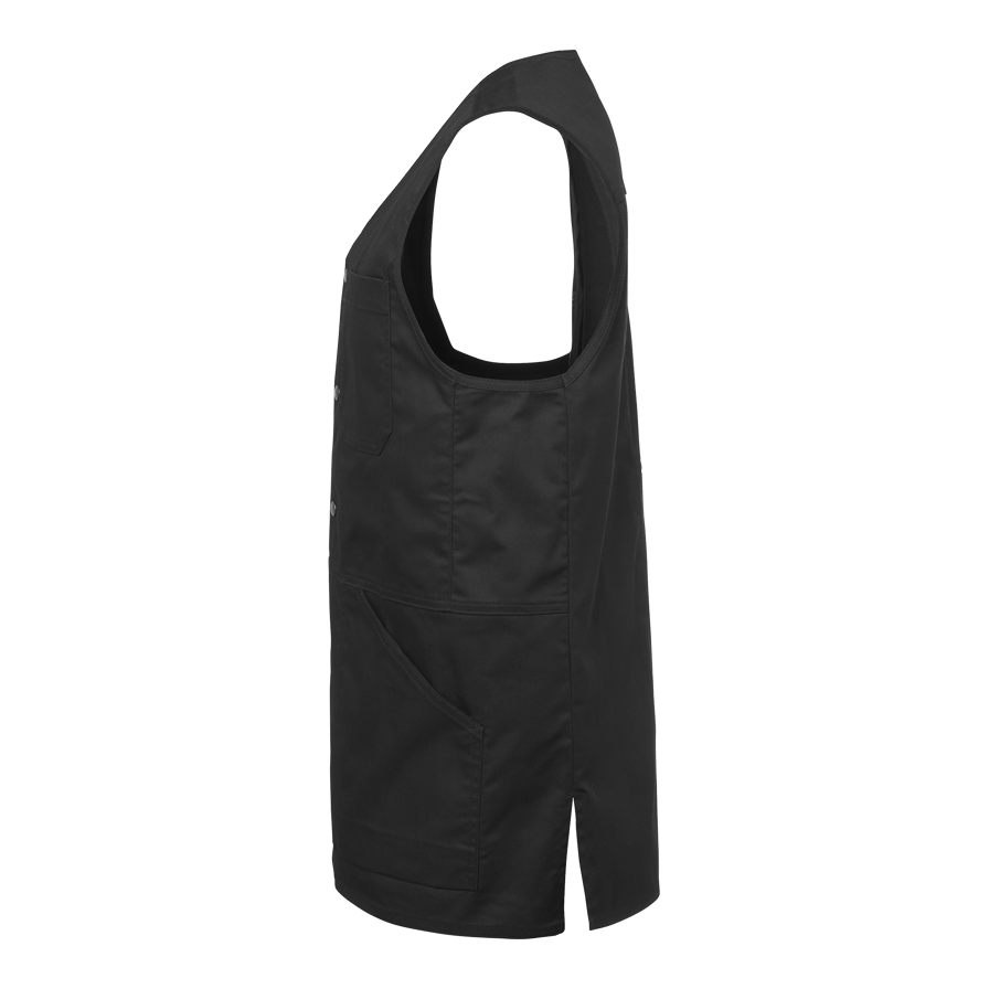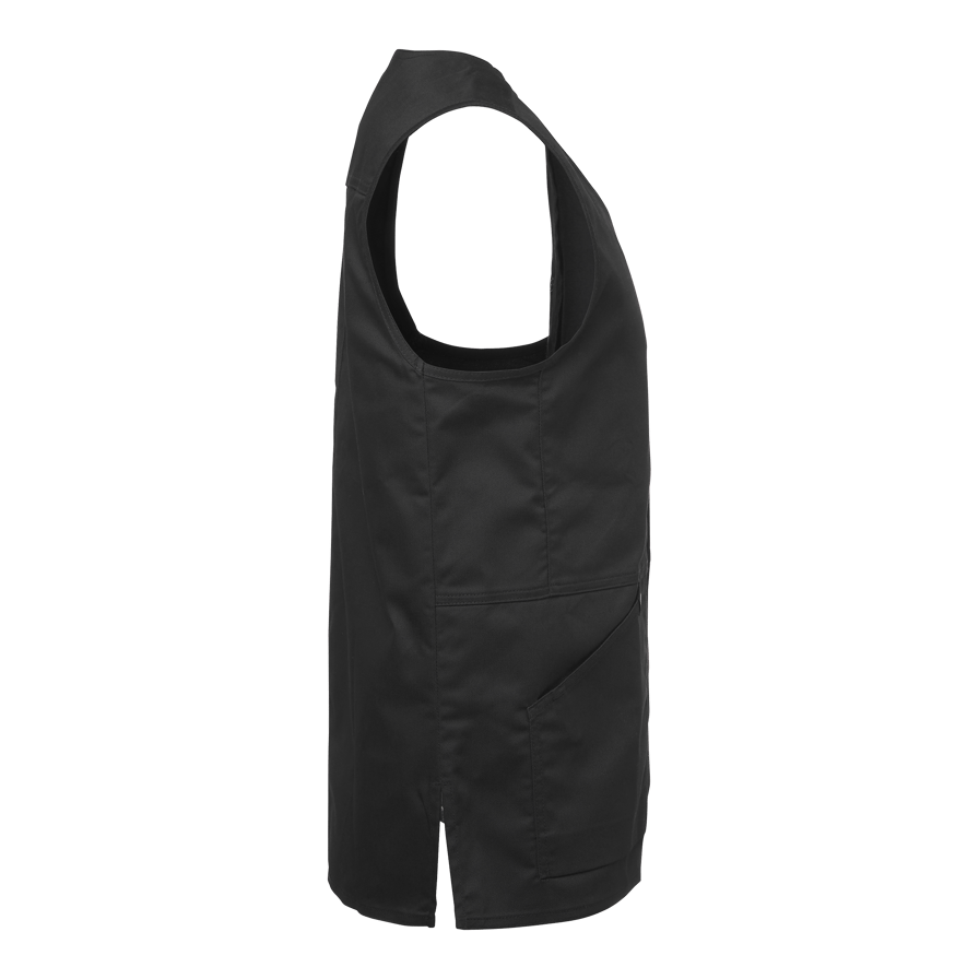 Unisex-vest med slidser forneden og trykknapper foran. Udstyret med en brystlomme og to skrå frontlommer. Ryglængde 73 cm i størrelse M.