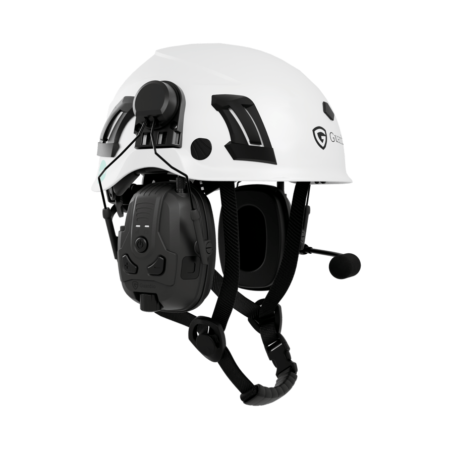 Guardio Freebird BT hearing protection with Bluetooth v5.1, apt-X technology, and 120h battery life. Easy to switch between headband and helmet mount.