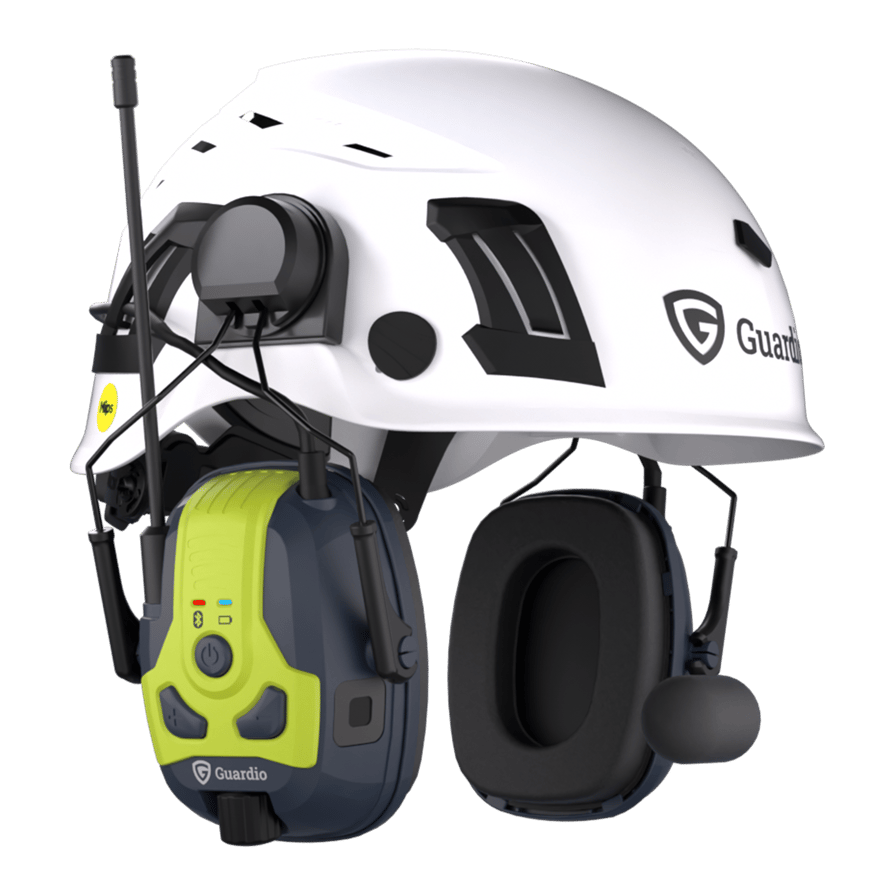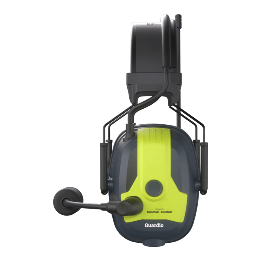 Guardio Freebird Pro X with Sound by Harman Kardon is the most advanced hearing protector in the Freebird series – developed for professionals who demand maximum communication, safety and sound quality in one device. Thanks to the collaboration with Harman Kardon, a world-leading audio brand, you get a top-class sound experience – for music, calls and intercom communication. Freebird Pro X is equipped with a built-in combined DMR446 and PMR446 radio offering a total of 16 programmable channels: 8 digital DMR channels and 8 analog PMR channels. This provides a flexible solution adaptable to different workplaces and needs. All channel selections, audio settings and intercom functions are easily managed via the Guardio Connect app. With the intelligent Sonunex VoxSense technology, the microphone is automatically activated during conversation – through an AI algorithm that identifies the human voice. You no longer need to press the PTT button and can work more efficiently. The boom microphone with built-in sidetone ensures clear communication even in noise levels up to 115 dB. Thanks to sidetone, the user hears their own voice, helping to maintain proper voice volume, confirm the microphone is working, and reduce fatigue during long conversations. With Bluetooth multipoint, two phones can be connected simultaneously, and the powerful battery delivers up to 120 hours of music or 18 hours of intercom talk time. With fast charging, you are quickly back to work. Freebird Pro X has a flexible design for both helmet mount and headband, and is tested and approved together with several leading helmet brands. The package includes charger, headband, helmet mount and storage bag – everything you need for a complete solution. Guardio Freebird Pro X with Sound by Harman Kardon – the most advanced choice for construction and industry professionals who want the best in hearing protection, digital communication and sound quality.