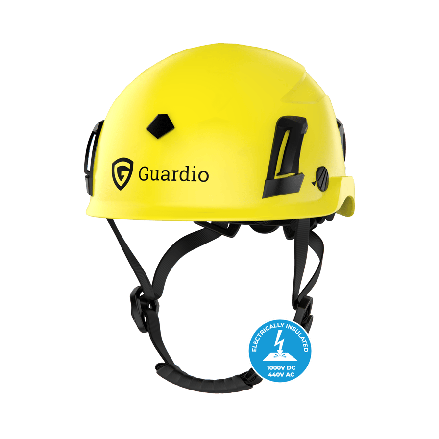 The Armet Volt Fluorescent Safety Helmet from Guardio is an electrically insulated safety helmet designed for work in challenging environments, with a fluorescent shell that reflects light for high visibility in dark environments. This helmet meets the highest safety standards for electrical insulation. Equipped with the MIPS safety system, the Armet Volt Fluorescent offers innovative technical solutions that reduce the risk of brain damage in the event of an oblique impact and increase comfort for the user. With the integrated twICEme technology, vital information can be stored directly in the helmet and easily read with a smartphone, further improving safety. The chin straps are optimized for use with hearing protection and are approved with several brands of hearing protection, ensuring a perfect fit and maximum level of protection. The Armet Volt Fluorescent Safety Helmet is available in Blazing Yellow and Fluorescent Orange, making it ideal for professionals in the construction and industrial sectors who require the best in protective equipment. Choose Guardio for innovative and science-based safety that makes a difference in the workplace.