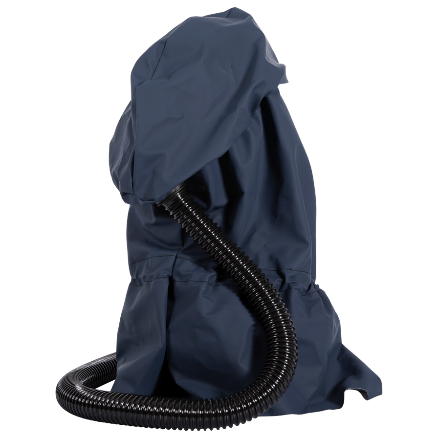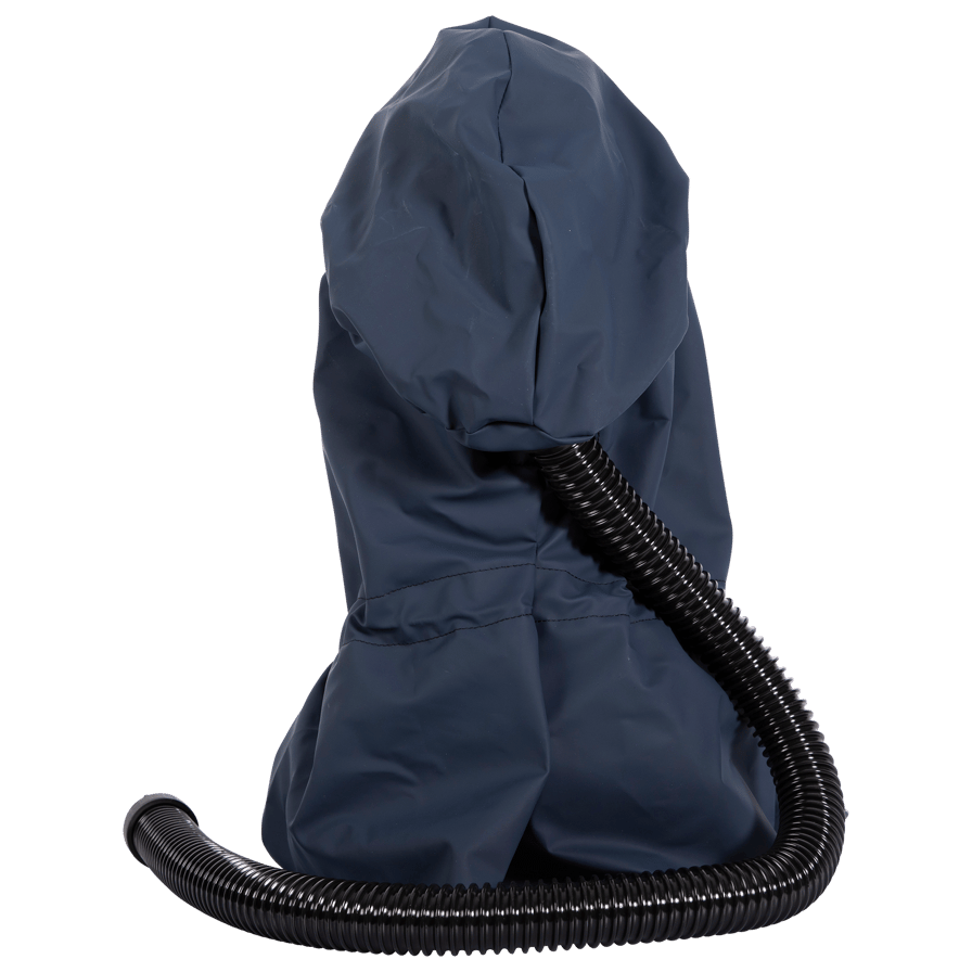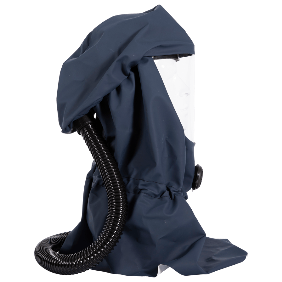 The hood together with the battery-powered SR 500, SR 500 EX or SR 700 fan and approved filters are included in the Sundström fan-assisted respiratory protection device systems. The breathing hose of the hood is connected to the fan, equipped with a filter. The pressure generated in the hood prevents particles and other pollutants from entering the hood. The hoods can also be used with the SR 507 compressed air equipment. This combination forms a breathing apparatus designed for continuous air flow, for connection to a compressed air supply. The equipment can be used as an alternative to filter respirators in all situations for which filter respirators are recommended. This applies particularly to work that is hard, warm or of long duration.