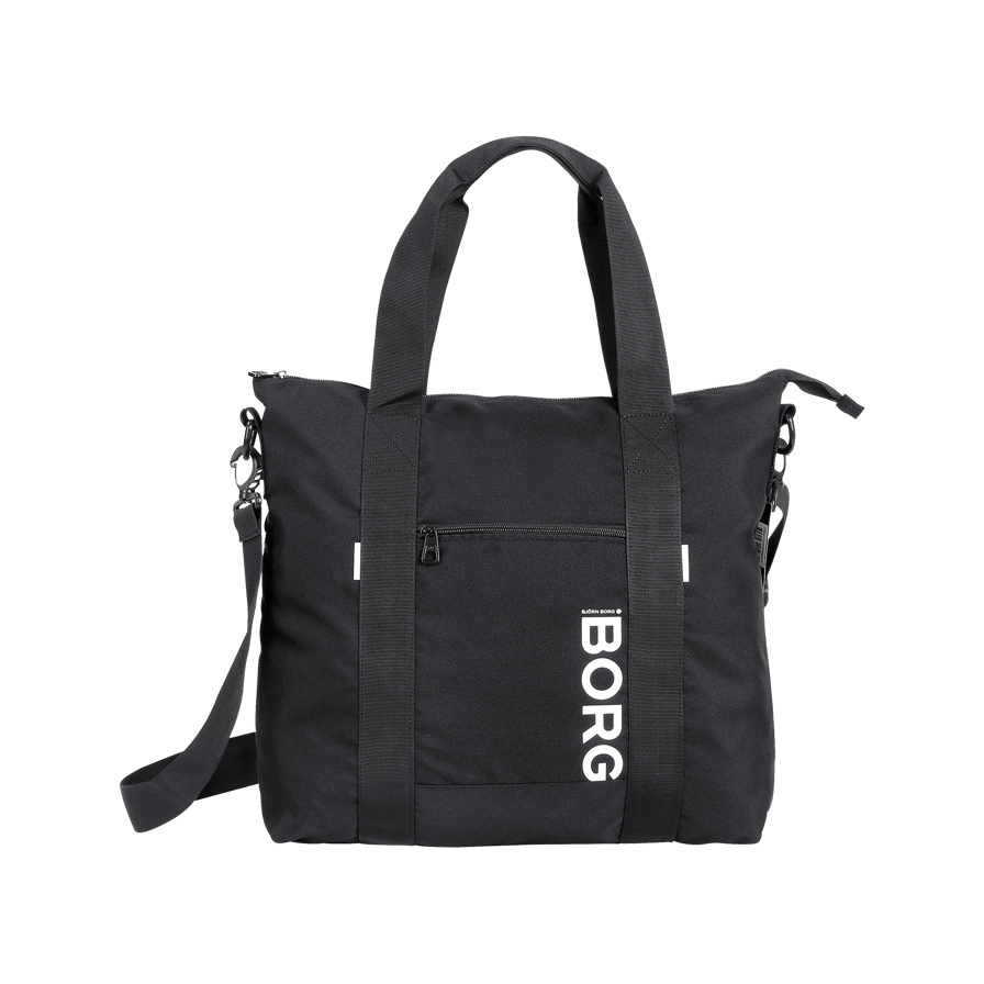 Robust recycled polyester. Smart details such as an internal lap top sleeve and external zipperedpocket, make the Björn Borg Tote Bag highly versatile. Store everything you need for the day. Withboth carrying handles and detachable shoulder strap, you can customise the bag to meet your needs.Dimensions: W 47 cm, H 41 cm, D 12 cm.