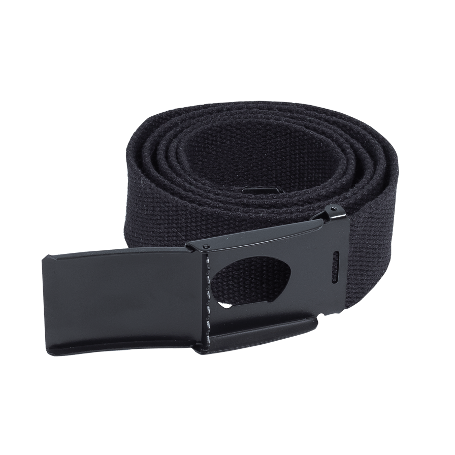 Stylish polyester belt with tone-on-tone metal buckle and logo on the metal end. The inside of the buckle serves as a cap opener. Length 120 cm, width 4 cm.