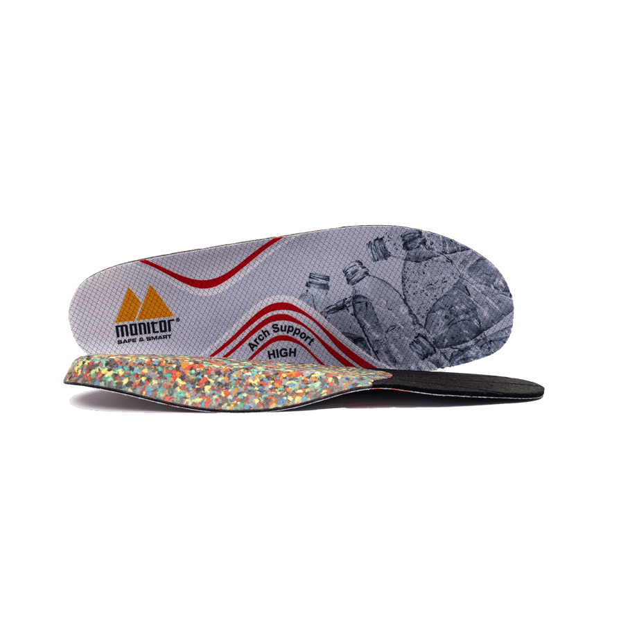 Monitor Arch Support low is an insole made in recycled Polyurethane with a high arch support. The sole is approved to put in all our Monitor certified protective and professional shoes without losing its certification approval. The sole is also ESD approved.