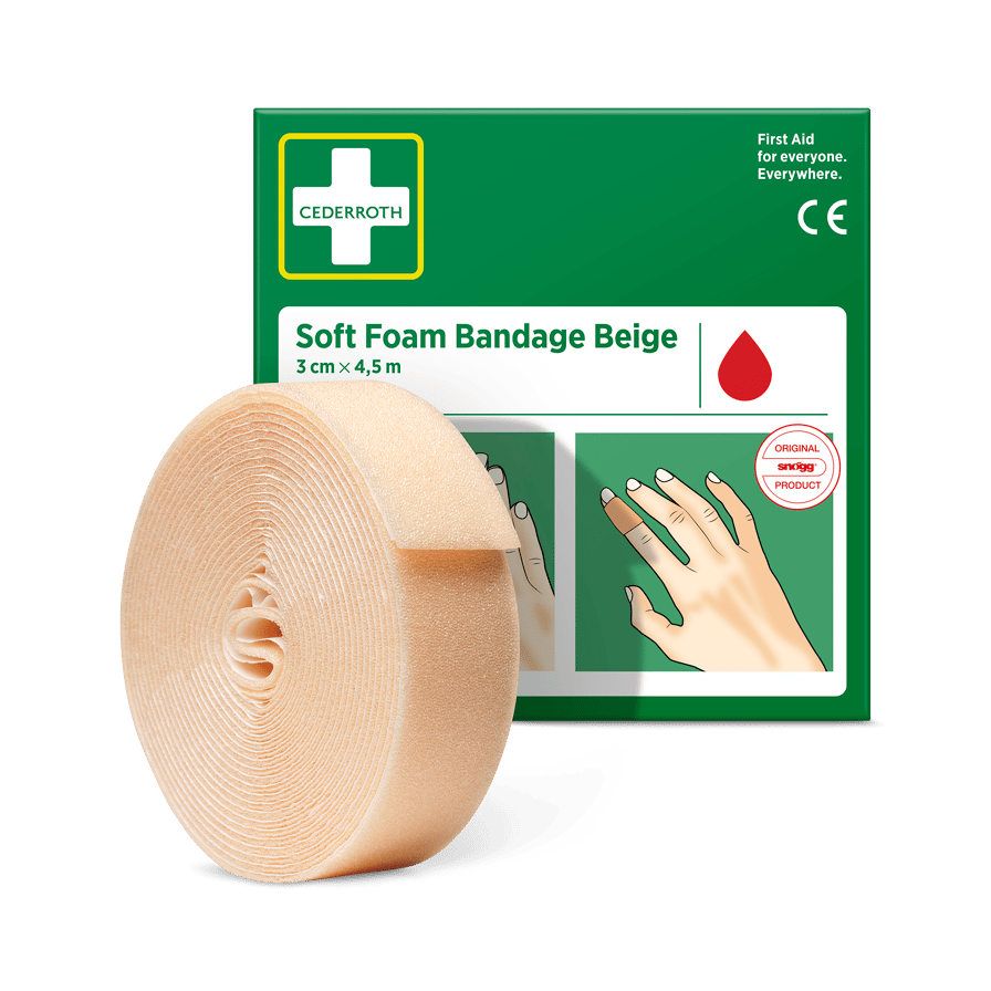 Cederroth Soft Foam Bandage Beige with width of 3 cm is perfectly suited for fingers or toes. Easy to wind around small hands or when you have a small wound. It functions as both a plaster and as a bandage. The dressing is suitable for all types of small wounds regardless of heat, cold, wet or dry and will even stay on in water. Cederroth Soft Foam Bandage is a self-adherent, adhesive-free plaster and therefore does not stick to the skin or hair. Simply tear off a suitable piece and wind around the injured area. Cederroth Soft Foam Bandage is ideal for quick and easy wound care. Suitable as refill for Soft Foam Bandage 2-in-1 Dispenser (REF 510004108).