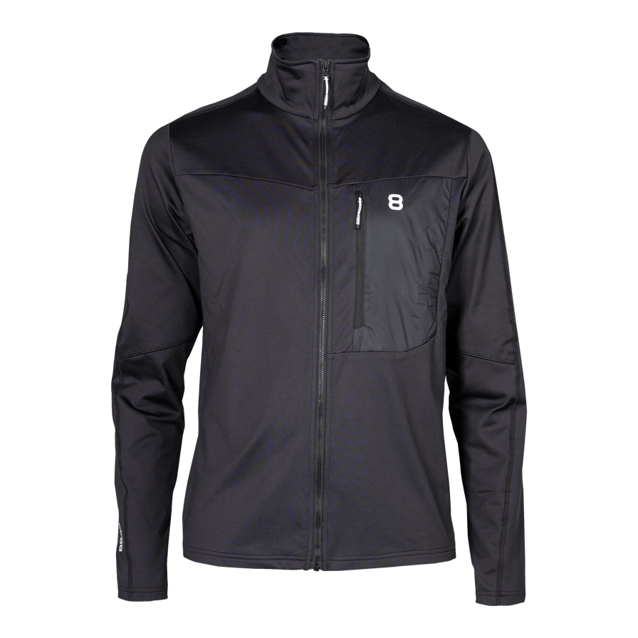 Technical second layer in moisture-transporting 4-way stretch material providing warmth without compromising with freedom of movement. With its athletic fit, it´s perfect as a lightweight reinforcement piece under the ski jacket or solitaire during outdoor activities in milder weather.Softly brushed inside for optimal comfort and faster moisture-transport. Full-length zipper from YKK®, when pulled all the way up, the neck is protected against snow and cold. The zippered chest pocket is made of ultralight and extremely durable fabric with graphene. Minimalistic profiling with printed "8" on the chest and small printed logo on the sleeve.