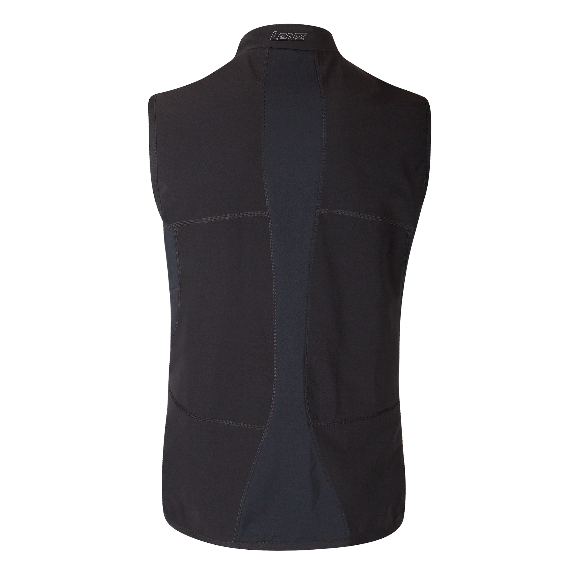 A warming vest that protects sensitive areas from cold, especially around the kidneys. Lithium batteries attach with snap buttons in designated inner pockets at the waist and power the integrated heating elements. Batteries are sold separately but are compatible with all Lenz lithium batteries. The material is windproof, quick-drying, breathable, and durable, providing maximum freedom of movement and a comfortable body climate. The slim fit ensures direct heat transfer at the push of a button. The collar is fleece-lined. Machine washable at 30 °C. Outer fabric: 84% polyamide, 16% elastane. Lining: 100% polyester.