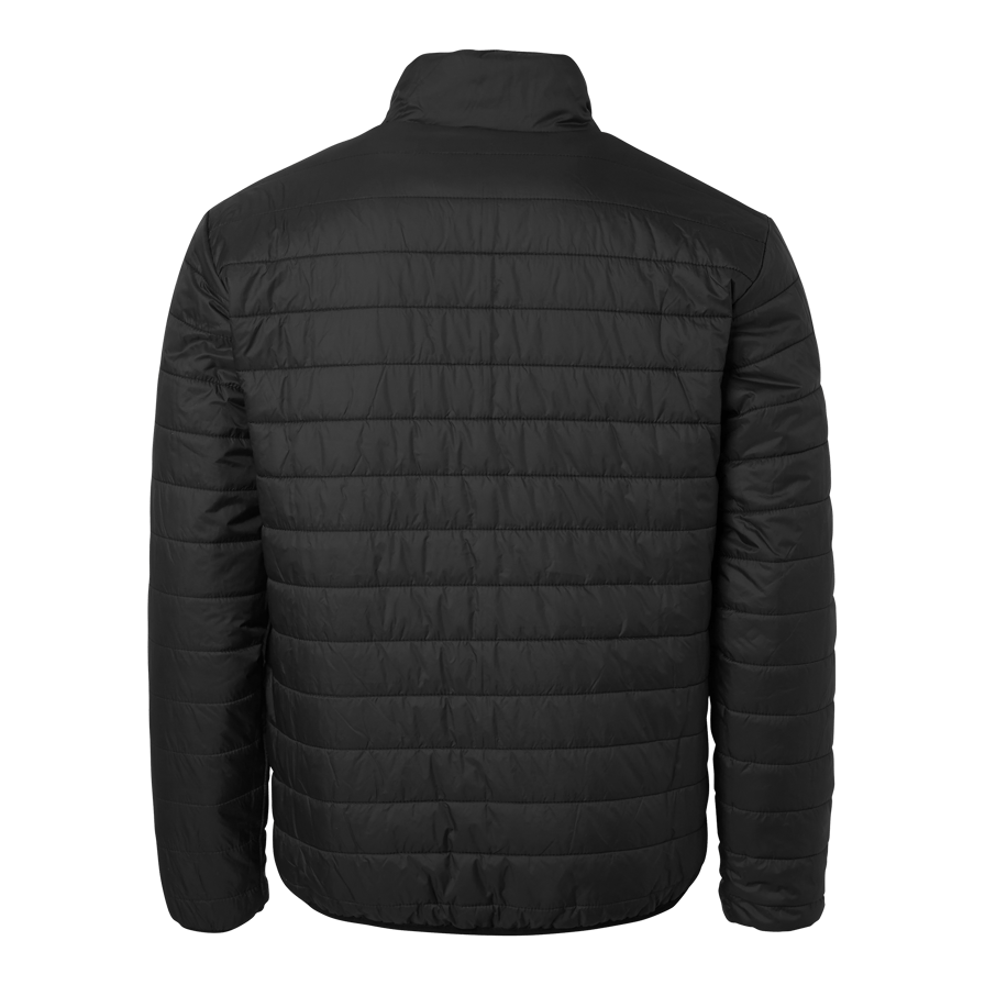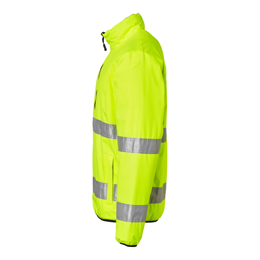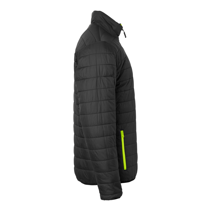 Reversible quilt lined jacket from Top Swede with two front zippered pockets. Strong water repellent and stretchy outer fabric. Can be worn as a high visibility jacket or black jacket, both sides have pockets. Perfect for work in construction and industry.