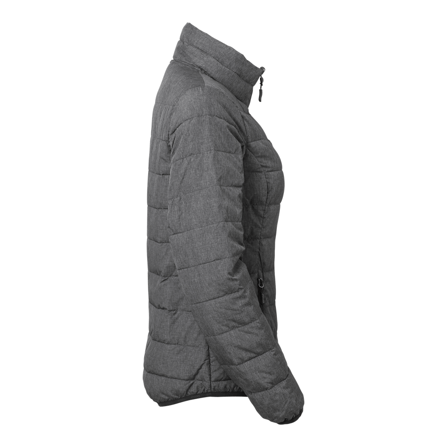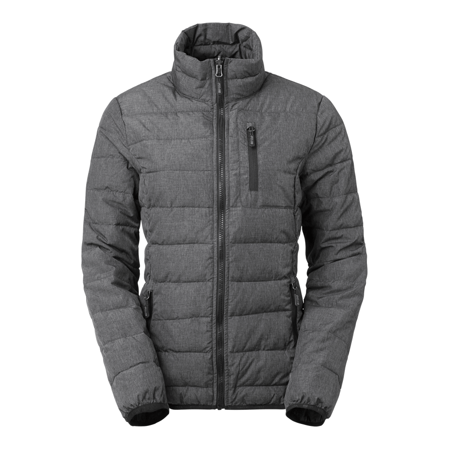 Modern lightweight jacket with faux down and a close fit. Can be used alone or attached to the Alma shell jacket as a warming liner. Narrow channels keep the down in place. One chest pocket and two side pockets. Elastic bands at hem and cuffs.