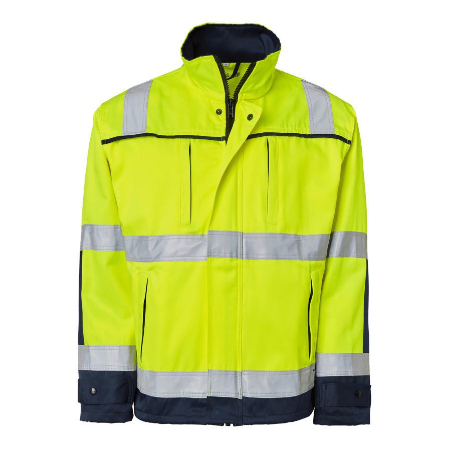 Warning waist jacket with two chest pockets, two inner pockets and two front zippered pockets, phone pocket, pull-out ID card pocket, drawstring hem, adjustable cuffs and CORDURA® reinforcements. Ideal for demanding work environments.