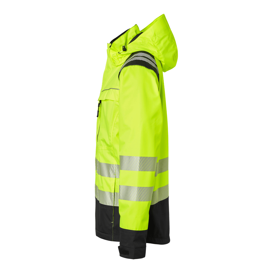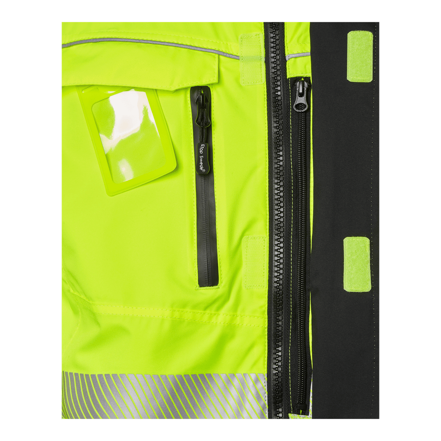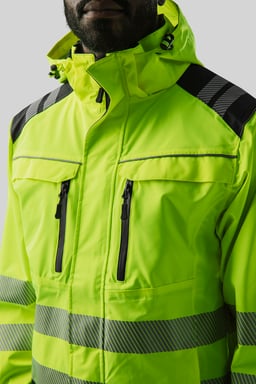 Shell jacket that is wind and waterproof from Top Swede. Good breathability, taped seams and stretchy outer fabric. Several pockets and detachable hood. Perfect for work in construction and industry.