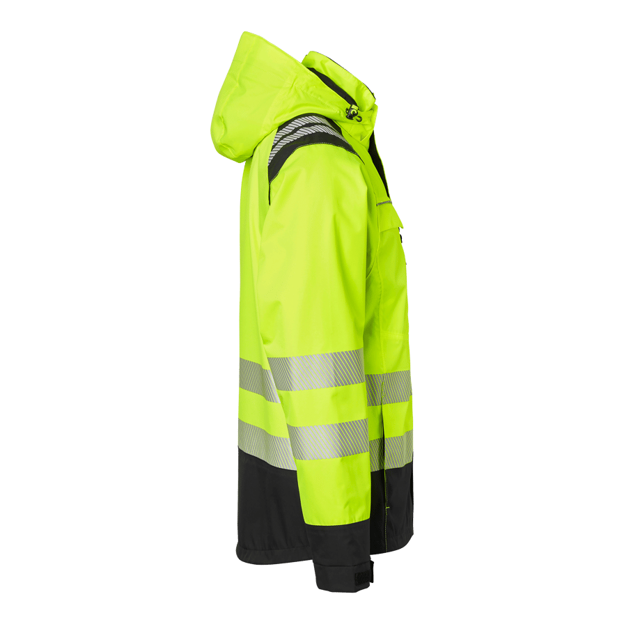 Shell jacket that is wind and waterproof from Top Swede. Good breathability, taped seams and stretchy outer fabric. Several pockets and detachable hood. Perfect for work in construction and industry.