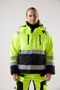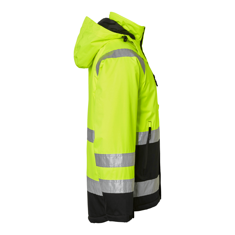 Wind- and waterproof winter jacket from Top Swede with stretch fabric, taped seams and good breathability. Multiple practical pockets and an adjustable, detachable hood make it ideal for construction and industrial work.