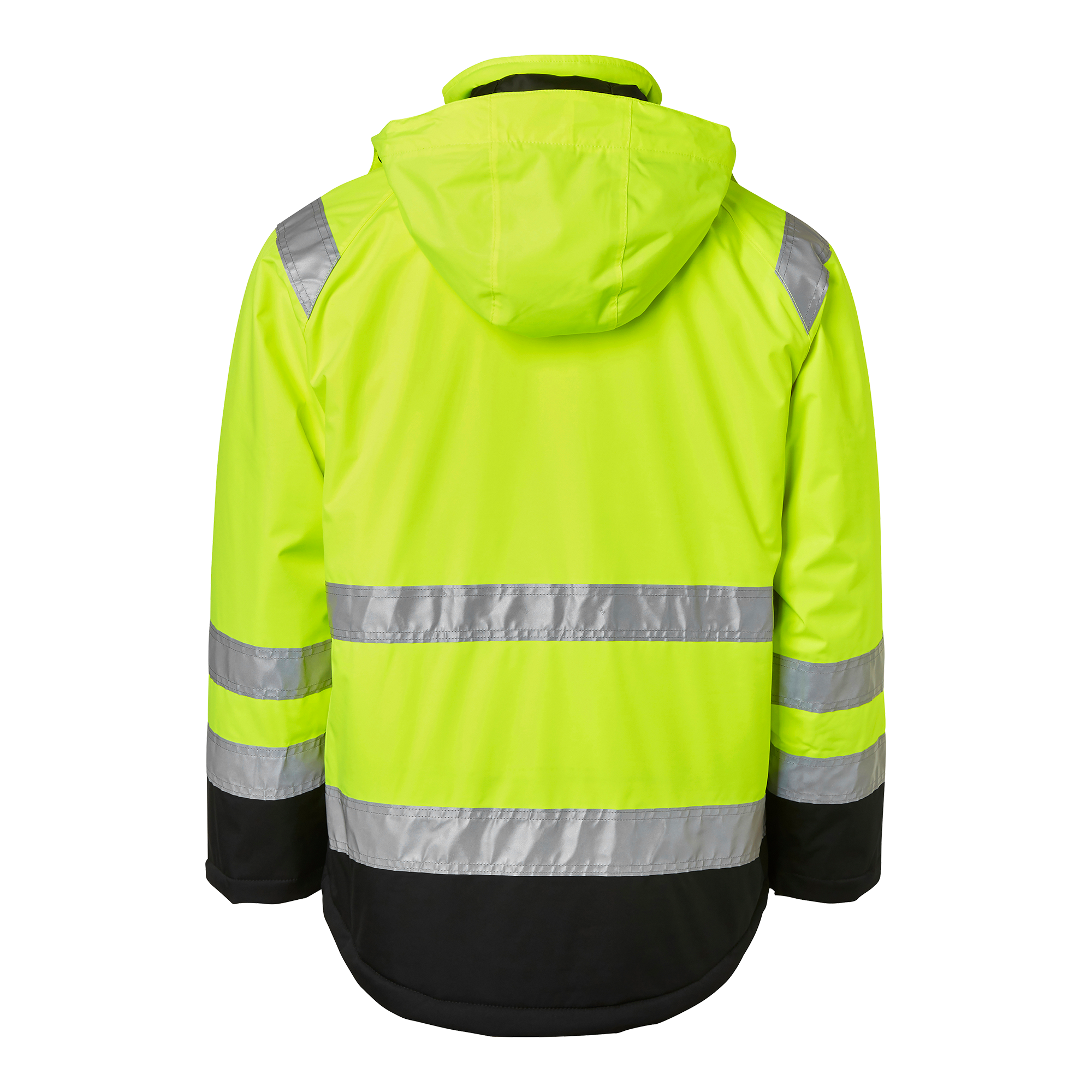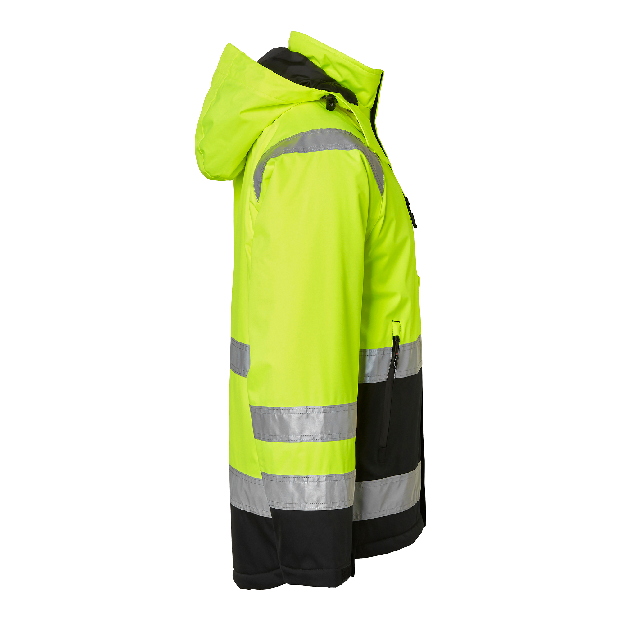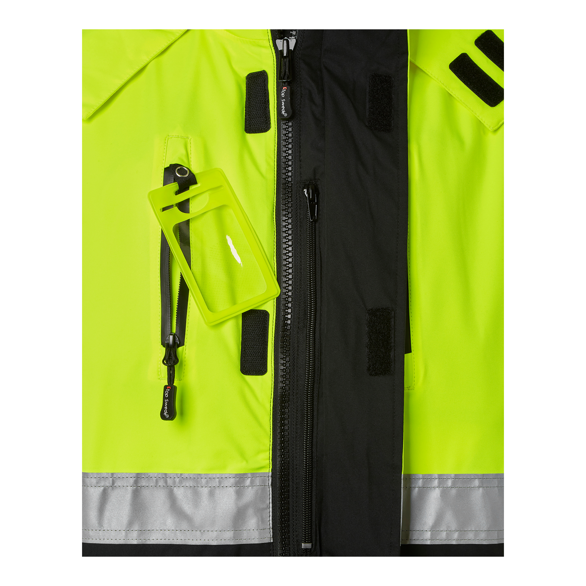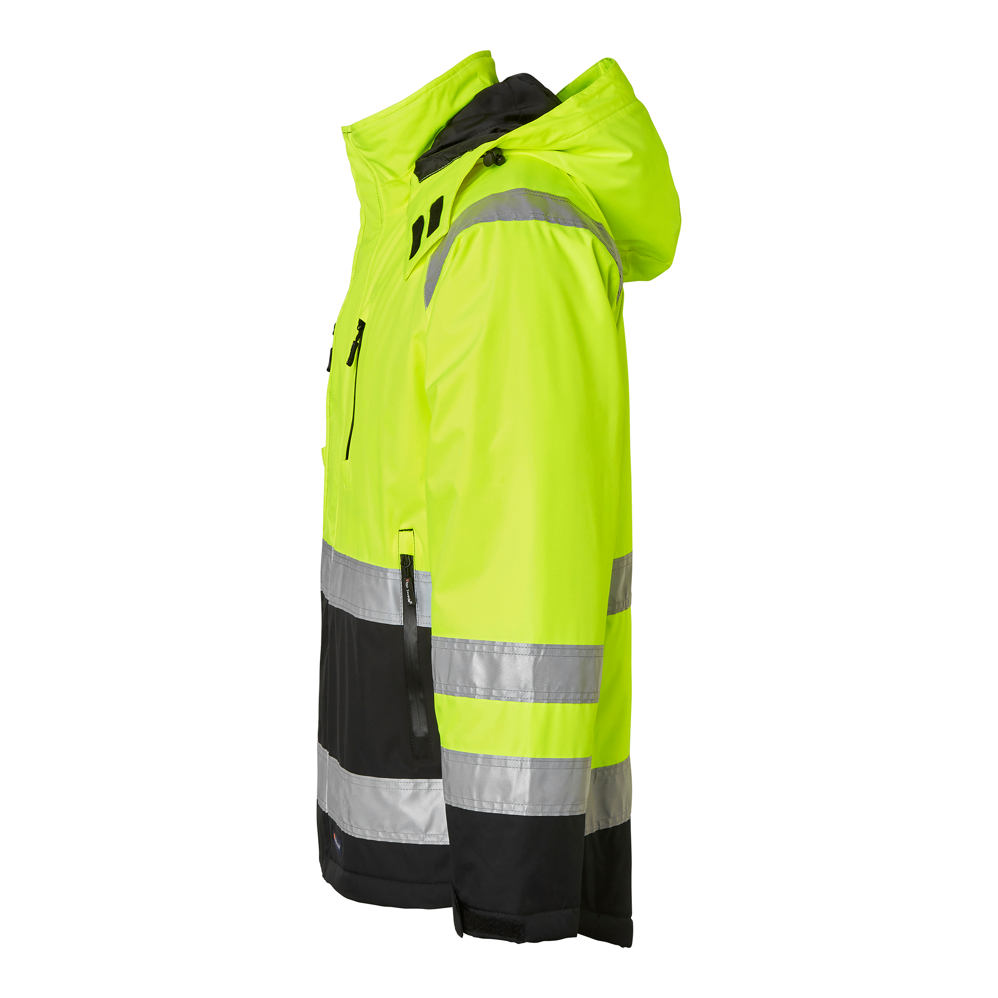 Wind and waterproof winter jacket from Top Swede. Taped seams, good breathability and stretchy outer fabric. Several practical pockets and adjustable detachable hood. Perfect for work in construction and industry.