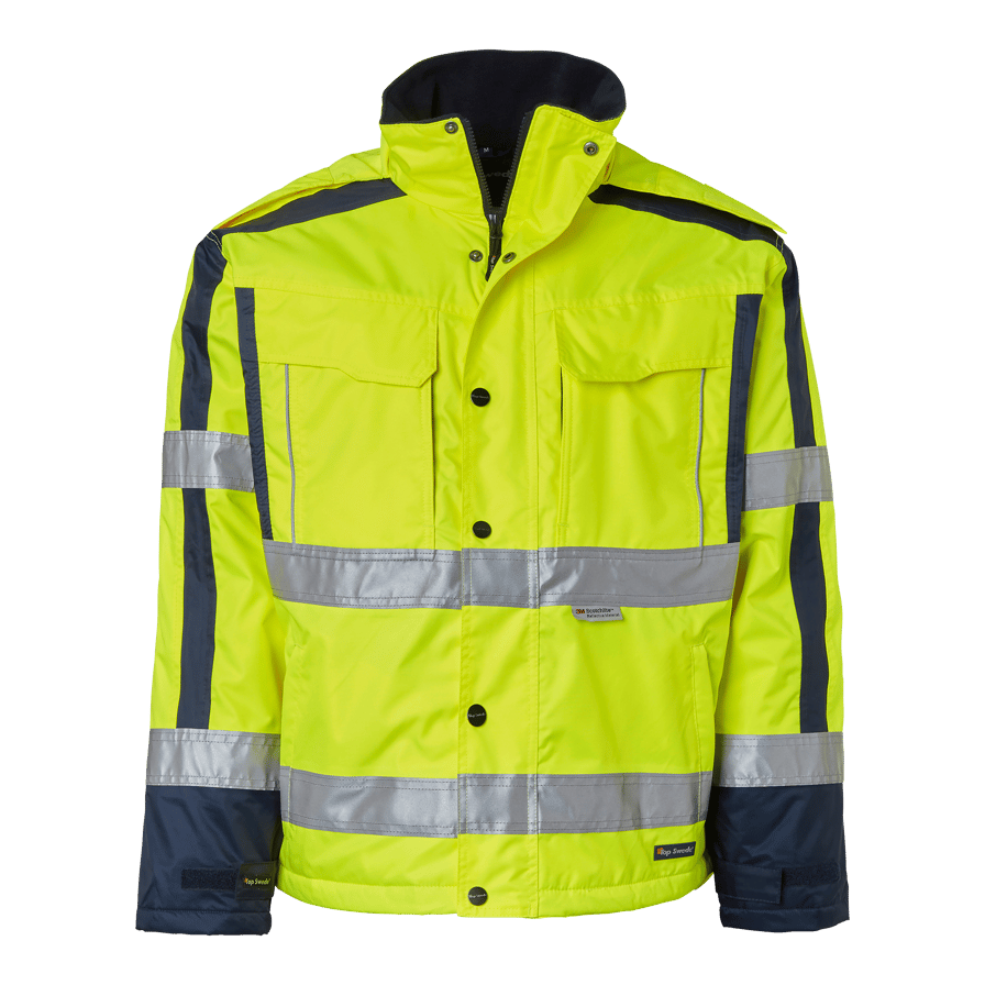 Discover the Top Swedes 163 Jacket, a high-performance winter jacket designed to provide ultimate protection and comfort in tough working environments. This wind and waterproof jacket is equipped with taped seams and an advanced breathability feature that keeps you dry and comfortable whatever the weather. Lined with quilting and fleece in the collar for extra warmth, it has a practical zipper that goes up the collar and an adjustable hood that can be hidden when not in use. With several functional pockets, including two chest pockets with flaps and hidden zippers, napoleon pocket, front pockets and inner pockets, the 163 Jacket offers plenty of storage space. Adjustable Velcro cuffs and drawstring hem ensure a perfect fit. Enhance your working day with this reliable and comfortable winter jacket from Top Swede.