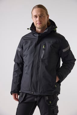 Discover the Top Swedes 350 Jacket, an ultimate winter jacket designed for construction and industrial professionals who need reliable protection against wind and water. Made from durable nylon, this jacket is wind and waterproof with taped seams for extra protection. The jacket is lined with quilting and has a back panel that adds increased warmth and ventilation, making it ideal for cold working days. Storage options include a chest pocket with waterproof zipper, an inner pocket/phone pocket and a large napoleon pocket under the lapel. The detachable lined hood provides extra protection from the elements, while reflective details increase visibility and safety. The jacket has side pockets with zippers, adjustable cuffs and hem and thumb grip cuffs for optimal fit and comfort. Choose the 350 Jacket for a combination of durability, functionality and comfort that meets the highest standards in workwear.