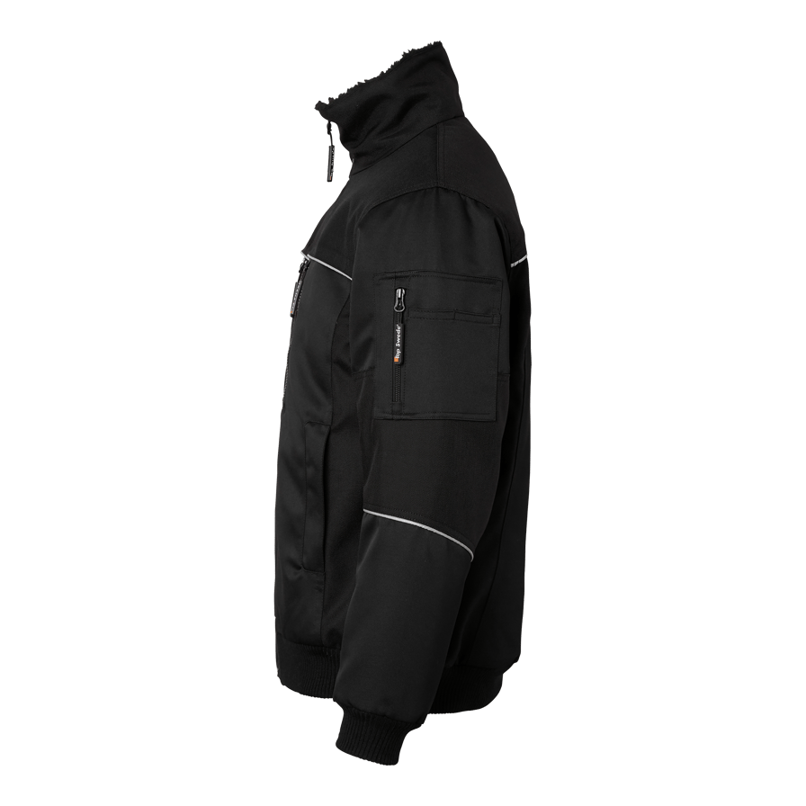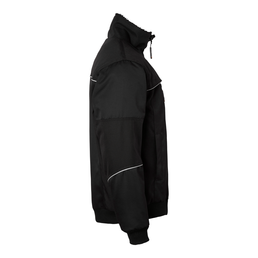Winter jacket with cuffs and bottom hem, lined with quilting and pilé on the inside of the collar. Reinforced sections, two front pockets, two chest pockets, sleeve pocket, inside pocket and phone pocket. Reflective piping and removable ID card pocket.