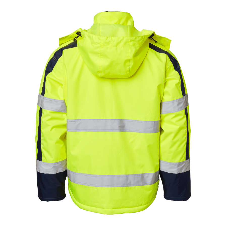 Wind and waterproof jacket with taped seams and good breathability. Lined with quilt and fleece in the collar. Equipped with several pockets, adjustable hood and cuffs and drawstring at the bottom. Perfect for working in all weather conditions.