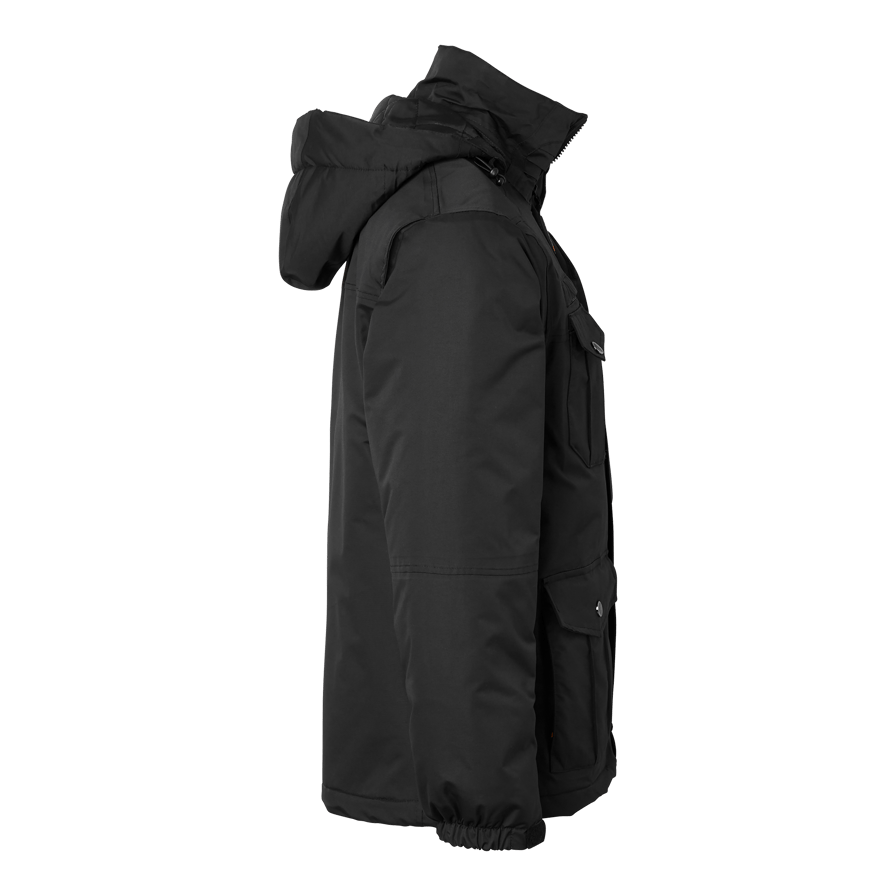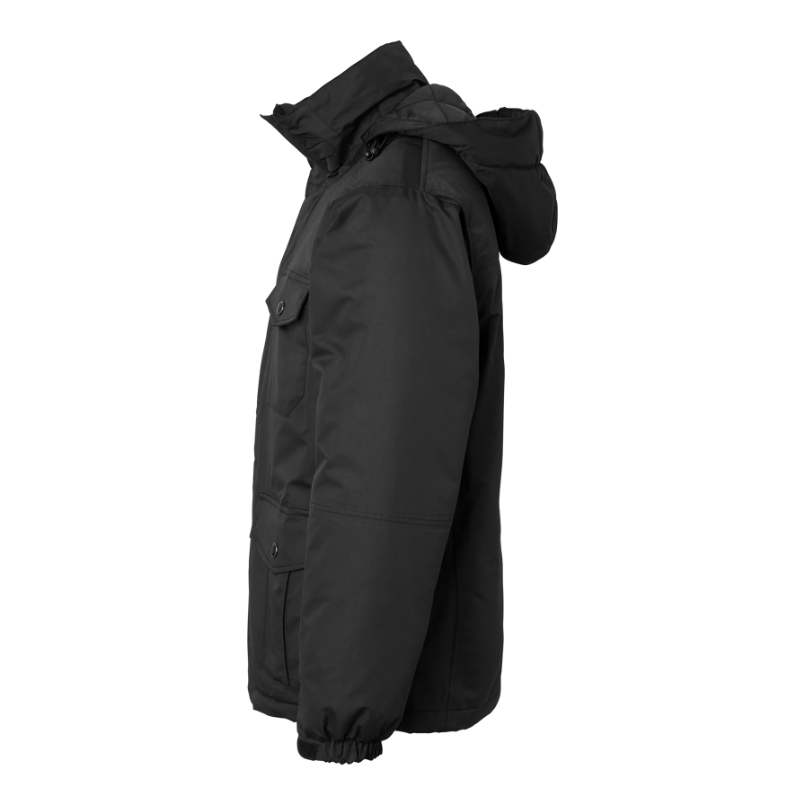 Discover the Top Swedes 5420 Jacket, a robust and versatile winter jacket designed to meet the toughest demands of construction and industry. This jacket is both windproof and waterproof with taped seams, ensuring protection against the most extreme weather conditions. With good breathability and quilt lining, this jacket keeps you warm and dry throughout the working day. It has a high collar for extra protection against wind and cold, along with several practical pockets. Two front pockets with flaps and zippers, two chest pockets (one with flap and one with zipper and phone pocket), a map pocket, two inner zippered pockets and a zippered sleeve pocket. The detachable lined hood provides extra protection when needed, while the adjustable cuffs and hem ensure a customizable fit. The thumb grip cuffs keep warmth in and provide extra comfort. The removable ID card pocket makes it easy to show your ID when needed. Choose the 5420 Jacket for a combination of durability, functionality and comfort, perfect for demanding work environments.