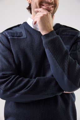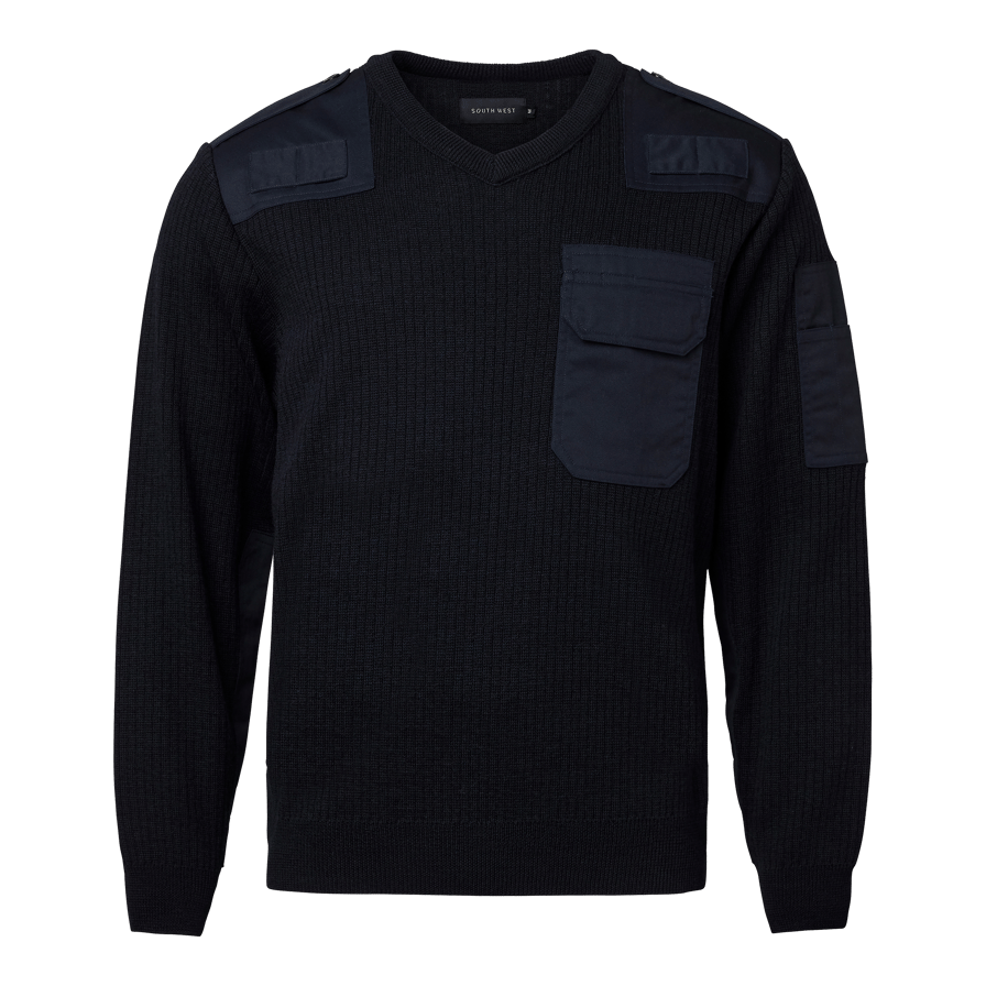 NATO Pullover V-neck from South West is a classic and functional sweater with a V-neck, designed for both comfort and durability in everyday challenges. Reinforced shoulders and elbows make it ideal for professional use. Ribbed cuffs and hem with elastane help maintain the fit throughout the day. With smart details such as epaulettes for insignia, a mic holder, a chest pocket, and a sleeve pocket, this pullover combines function with timeless style. A dependable garment for professional environments where durability and a classic look are essential.