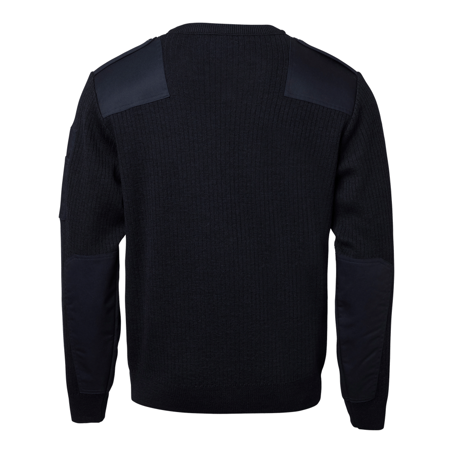 Classic NATO pullover with a V-neck. Reinforced at shoulders and elbows. Ribbed hem and cuffs with elastane for a secure fit. Equipped with mic holder, epaulettes for insignia, and pockets on the chest and sleeve.