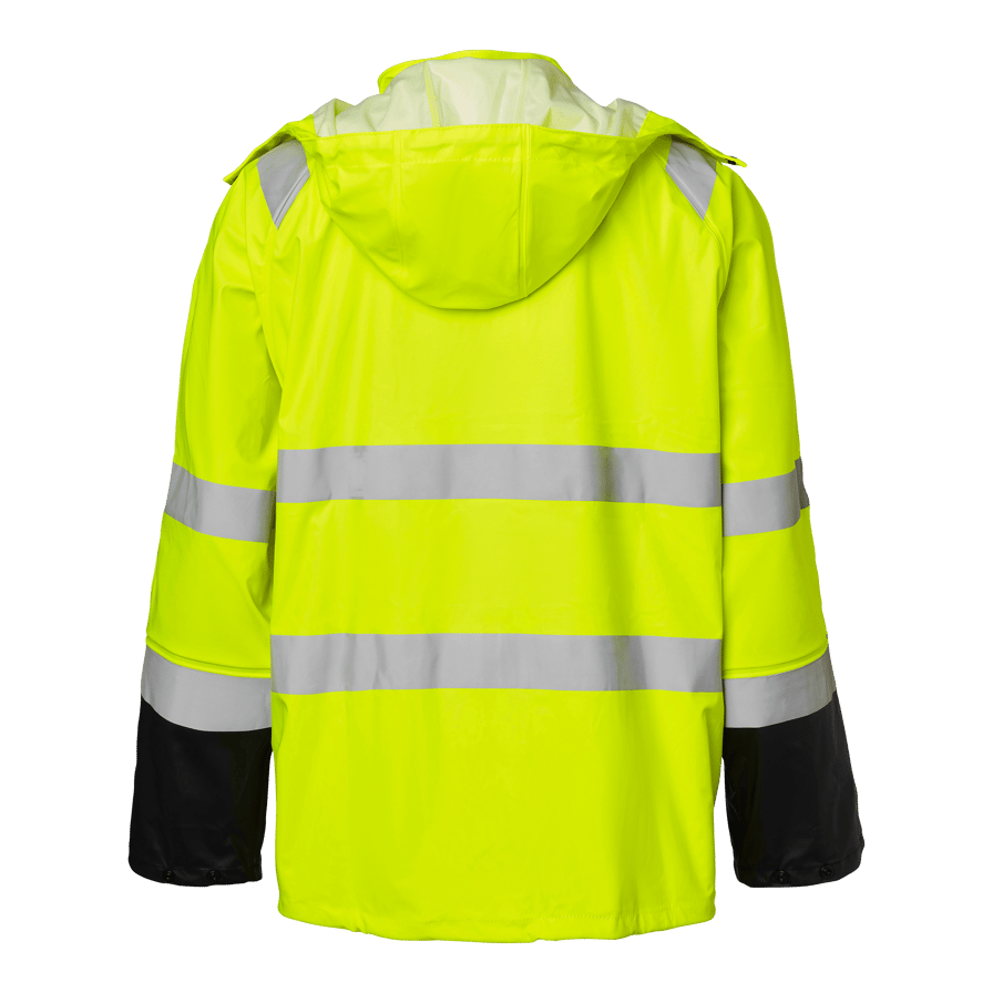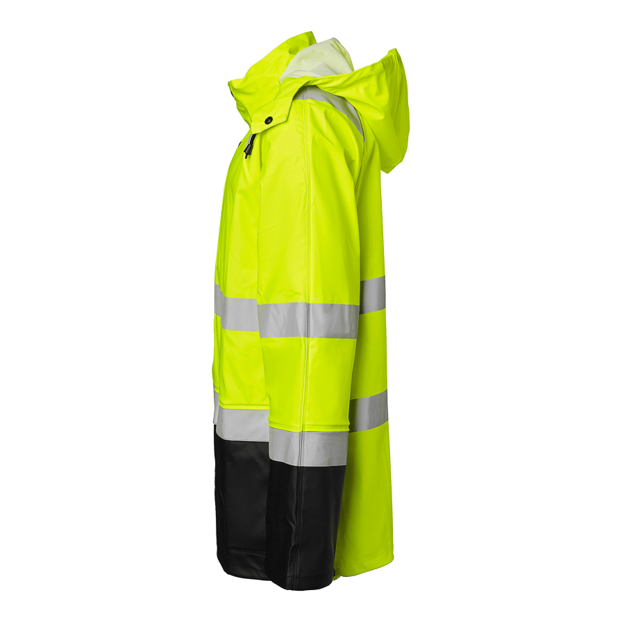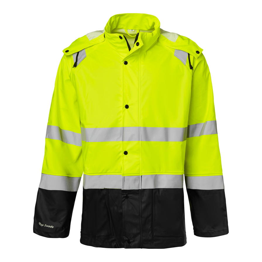 Discover the Top Swede 180 Rain Jacket Hi-Vis, designed for construction and industrial professionals who require maximum protection and visibility in rainy conditions. This rain jacket is made from stretch fabric with welded seams to ensure you stay dry even in the most challenging weather conditions. The jacket has a zipper with a flap and press studs for extra protection against wetness. The hidden ID card pocket, detachable hood with drawcord and two front pockets with flaps offer practical storage options for tools and accessories. The inner pocket and phone pocket provide extra secure storage for your personal belongings. With a drawstring hem and adjustable cuffs, you can customize the fit for optimal comfort. The jacket's 80 cm length provides extra protection and coverage. The Top Swede 180 Rain Jacket Hi-Vis combines durability, functionality and high visibility, making it ideal for use in a variety of work environments where safety and protection are essential. Choose Top Swede for workwear you can rely on – both at work and outside.